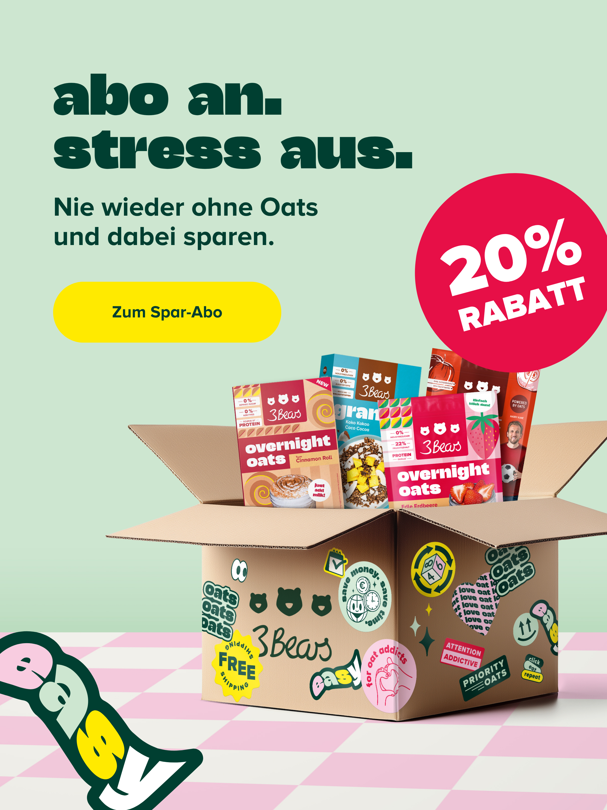 Bei 3Bears dreht sich alles um dich und deinen Morgen. Wir sind ein kleines Team von Food-Enthusiasten am Standort München und stehen jeden Tag mit einer Mission auf: dein Leben mit den wohl leckersten Hafer- & Porridge-Produkten ganz ohne Industriezucker zu bereichern! Unser Fokus liegt auf Overnight Oats, Granola, Porridge und Hafer-Riegel – den ultimativen Superstars für einen perfekten Start in den Tag.