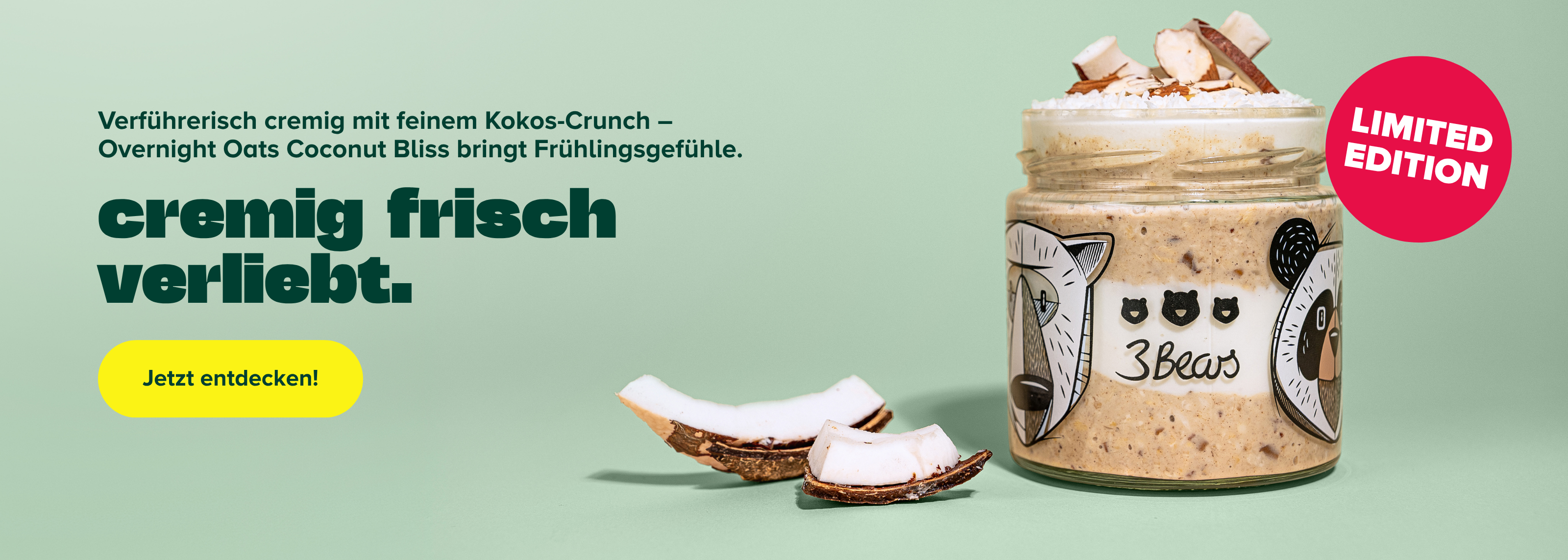 Bei 3Bears dreht sich alles um dich und deinen Morgen. Wir sind ein kleines Team von Food-Enthusiasten am Standort München und stehen jeden Tag mit einer Mission auf: dein Leben mit den wohl leckersten Hafer- & Porridge-Produkten ganz ohne Industriezucker zu bereichern! Unser Fokus liegt auf Overnight Oats, Granola, Porridge und Hafer-Riegel – den ultimativen Superstars für einen perfekten Start in den Tag.