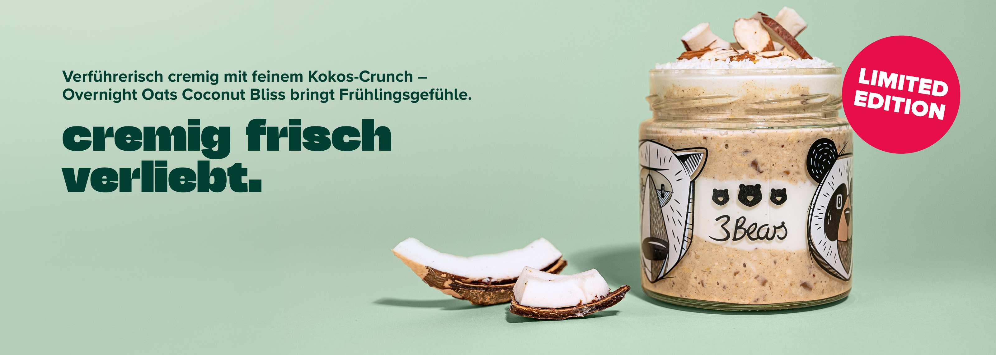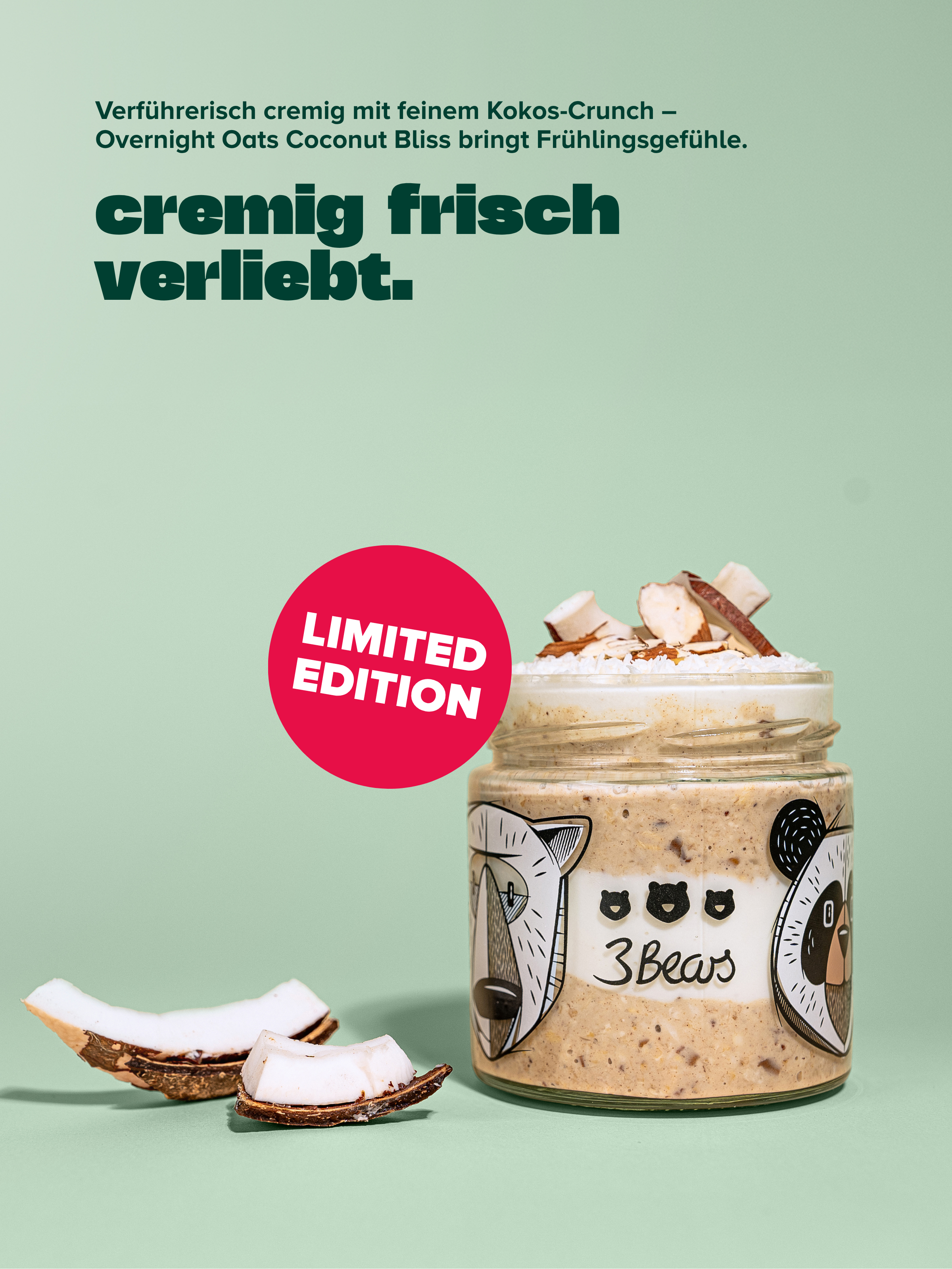 3Bears Overnight Oats - Coco Raspberry, naturally sweet, no additives, and 100% vegan 01_OO-Kokos-Himbeere_Hauptbild_7000796 3Bears Overnight Oats Haselnuss-Kakao