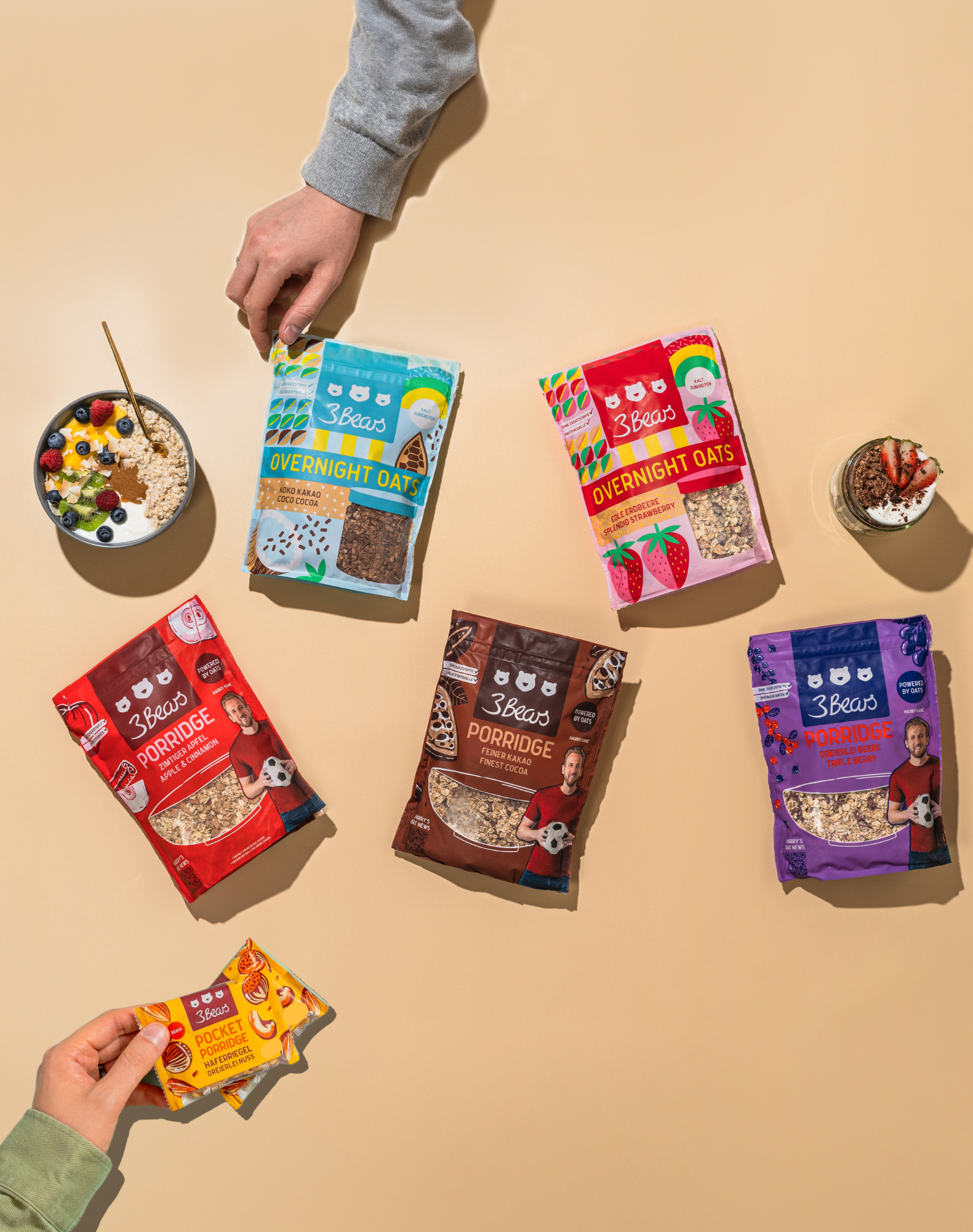 At 3Bears it's all about you and your morning. We are a small team of food enthusiasts based in Munich and get up every day with a mission: to enrich your life with the most delicious oatmeal & enrich porridge products without any added sugar! Our focus is on porridge, overnight oats and oat bars - the ultimate superstars for an energetic start to the day. With us you will find everything: organic porridge, porridge for children, functional porridge for athletes, accessories for overnight oats and porridge and much more.