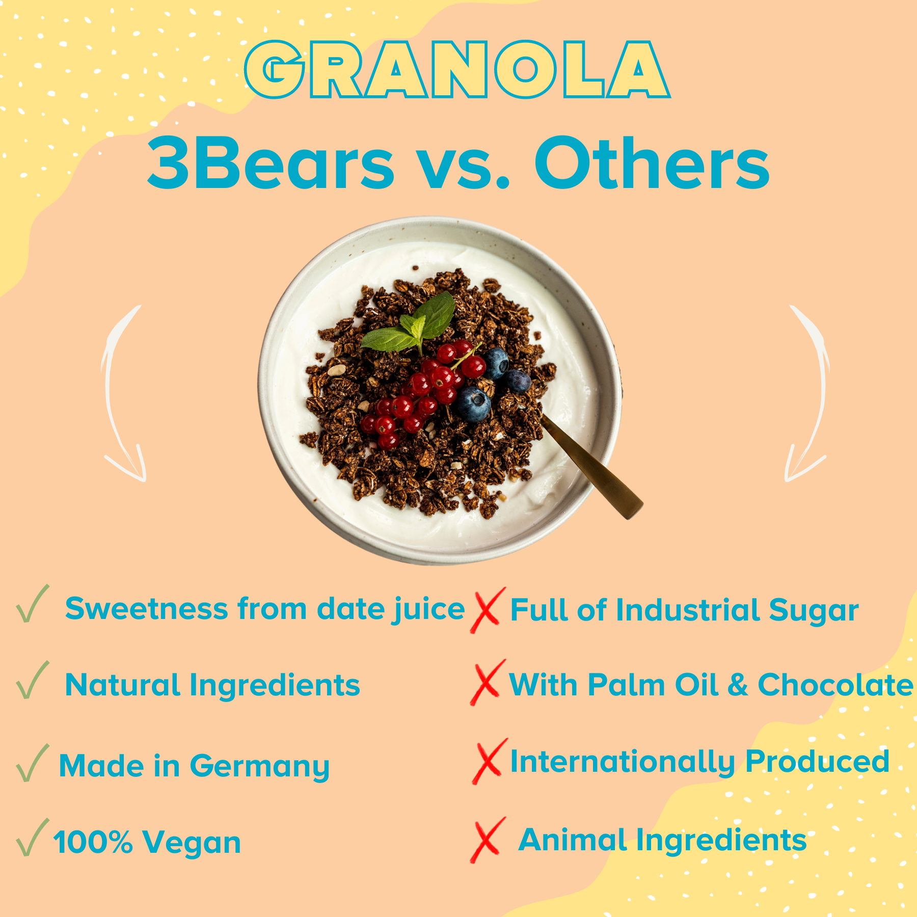 In the past I have often worked with 3Bears on collaborations. 3Bears shares my passion for high-quality food that is not only delicious, but also wholesome. That's why I was so excited about the idea of developing a granola that combines exactly these two components - it's made entirely without industrial sugar and tastes like it was homemade!