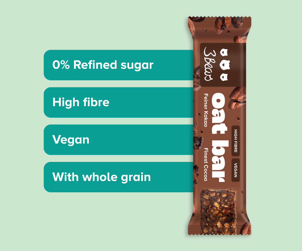 We founded 3Bears in 2016 because we were frustrated with how much sugar was in so many foods. We brought porridge to Germany because we think it's the perfect basis for a wholesome breakfast. You can now get pretty much everything to do with oats from us: overnight oats, bars, granola and accessories. And you can trust us to always stick to our principles. Our products contain no industrial sugar, no additives, they are always 100% plant-based and sustainability is deeply rooted in us.