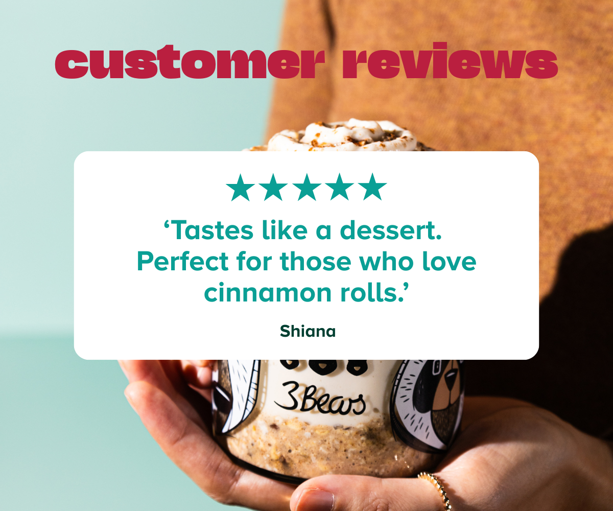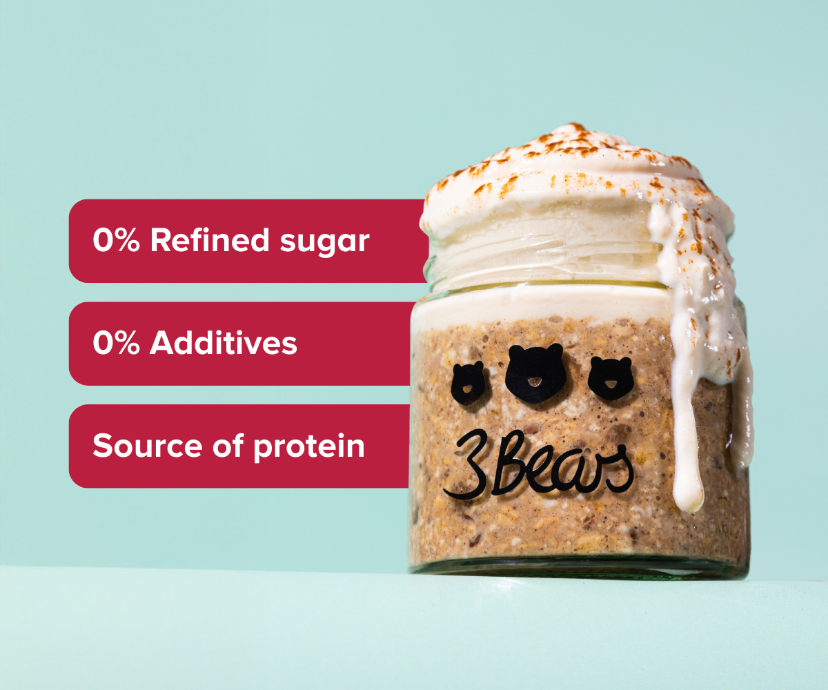 We founded 3Bears in 2016 because we were frustrated by how much sugar was hidden in so many foods. We brought porridge to Germany because for us it makes the perfect, wholesome breakfast. You can now get pretty much everything related to oats from us: overnight oats, bars, granola and accessories. And you can trust us to always stick to our principles. There is no industrial sugar or additives in our products, they are always 100% plant-based and sustainability is deeply rooted in us.
