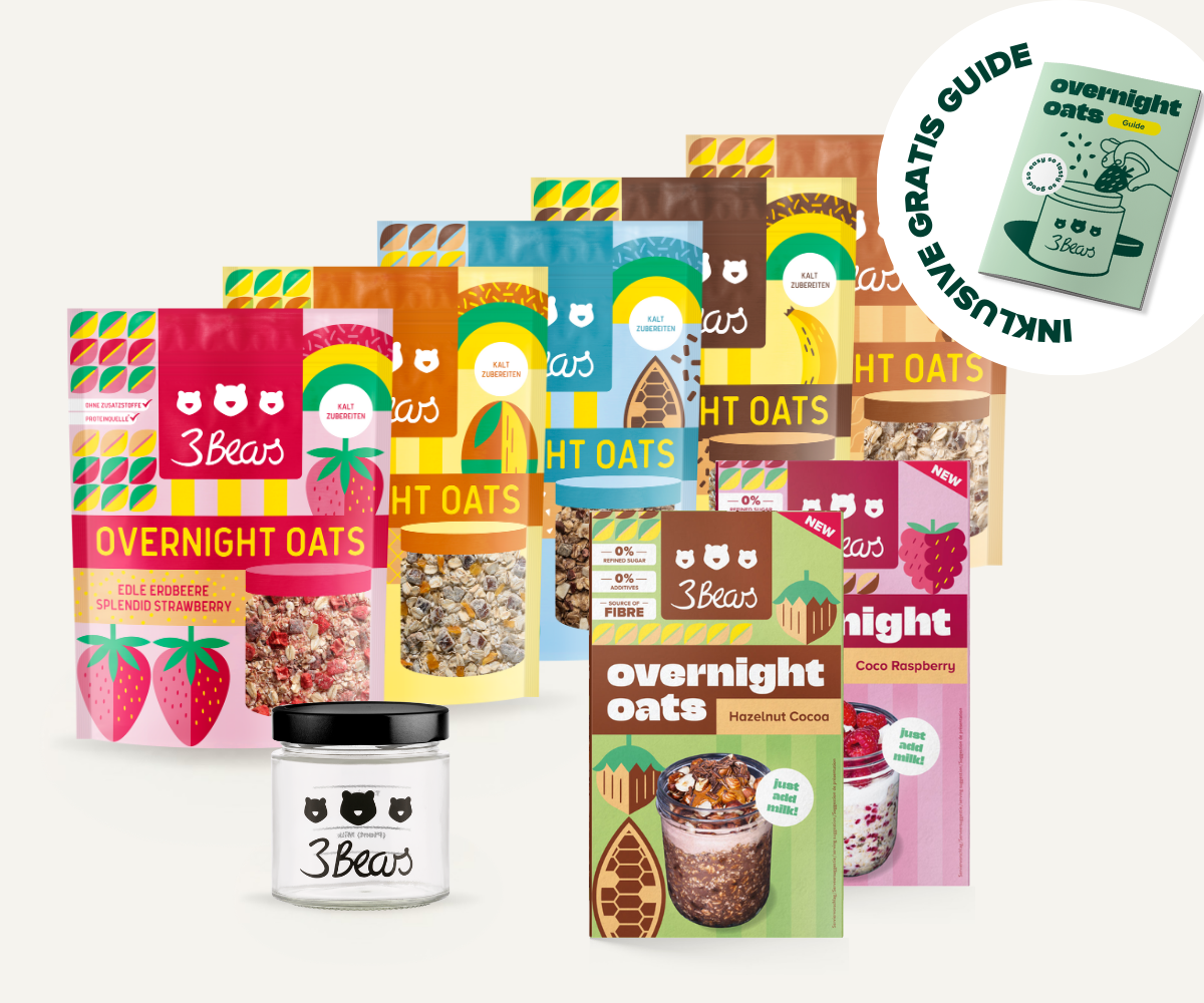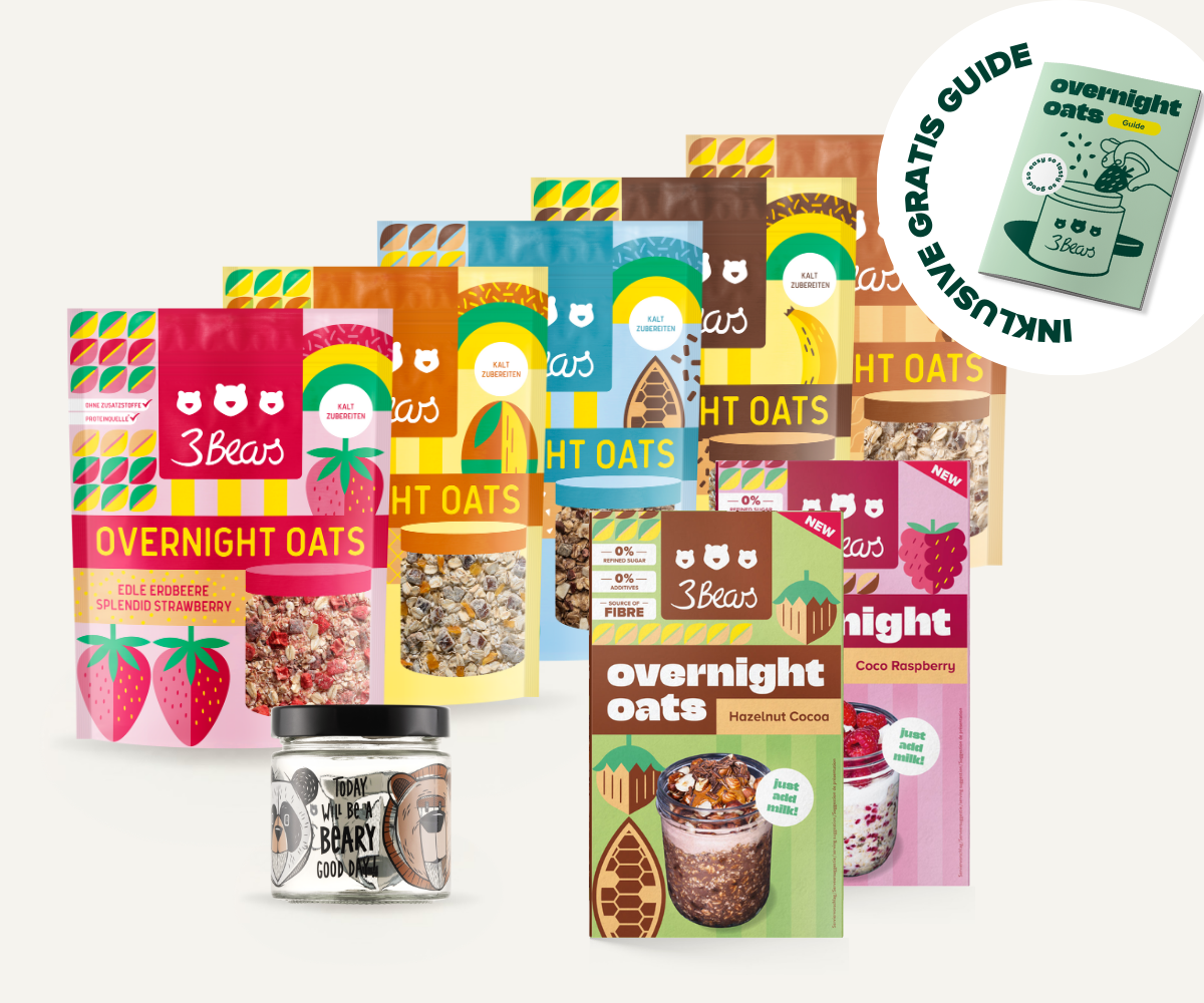 We founded 3Bears in 2016 because we were frustrated by how much sugar was hidden in so many foods. We brought porridge to Germany because for us it makes the perfect, wholesome breakfast. You can now get pretty much everything related to oats from us: overnight oats, bars, granola and accessories. And you can trust us to always stick to our principles. There is no industrial sugar or additives in our products, they are always 100% plant-based and sustainability is deeply rooted in us.