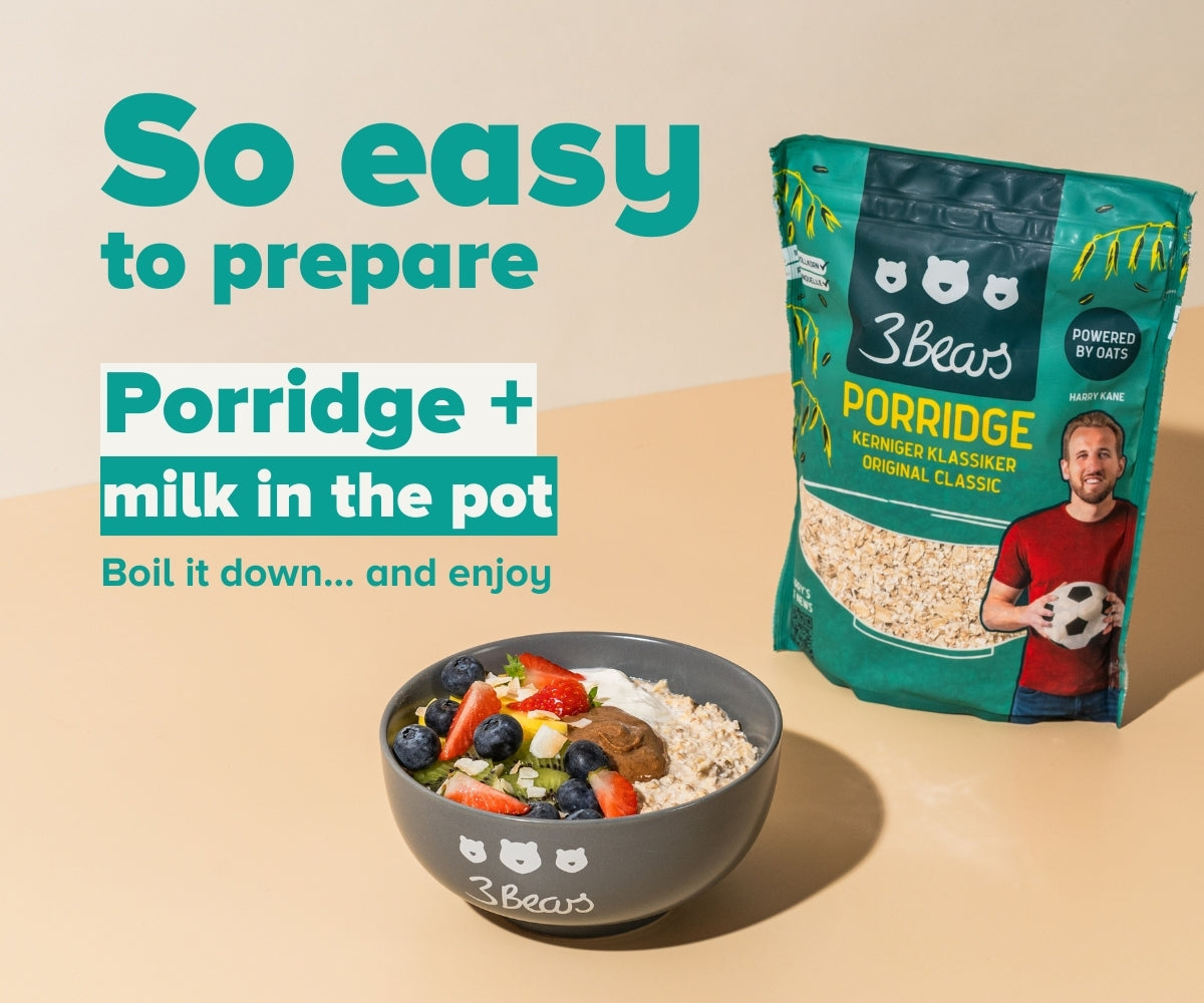 We founded 3Bears in 2016 because we were frustrated with how much sugar was in so many foods. We brought porridge to Germany because we think it's the perfect basis for a wholesome breakfast. You can now get pretty much everything to do with oats from us: overnight oats, bars, granola and accessories. And you can trust us to always stick to our principles. Our products contain no industrial sugar, no additives, they are always 100% plant-based and sustainability is deeply rooted in us.