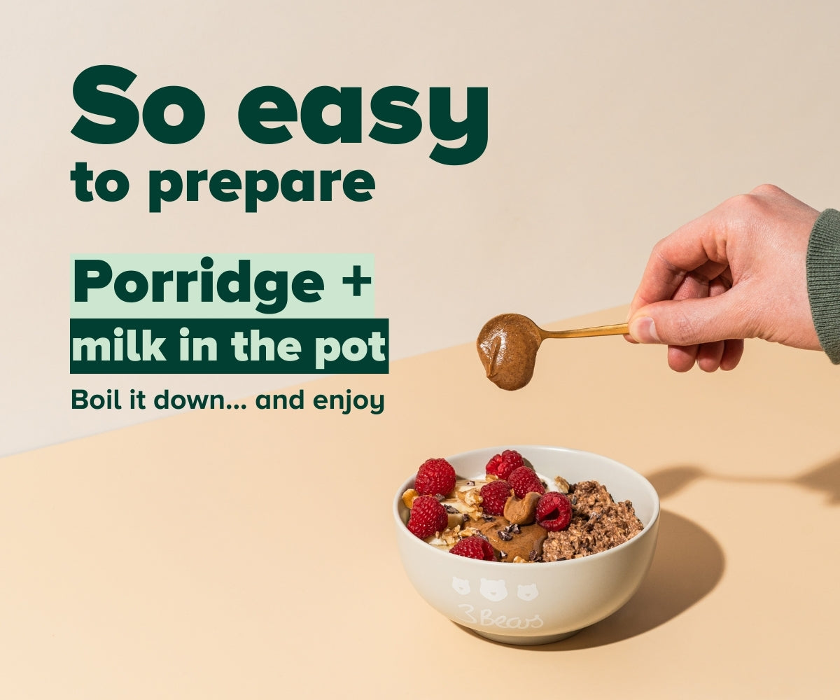 Do you think all oatmeal tastes the same? Then you haven't tried 3Bears Porridge Original Classic yet. For the incomparable taste, we rely on selected wholegrain oat flakes from a traditional German mill in the Black Forest. Our secret mixture of different flakes ensures a creamy and at the same time crunchy consistency. Our community ignores all other oatmeal in the supermarket.Ingredients & Nutritional Values