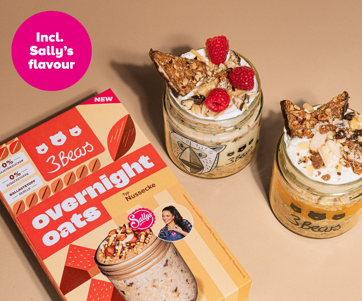 We founded 3Bears in 2016 because we were frustrated with how much sugar was in so many foods. We brought porridge to Germany because we think it's the perfect basis for a wholesome breakfast. You can now get pretty much everything to do with oats from us: overnight oats, bars, granola and accessories. And you can trust us to always stick to our principles. Our products contain no industrial sugar, no additives, they are always 100% plant-based and sustainability is deeply rooted in us.