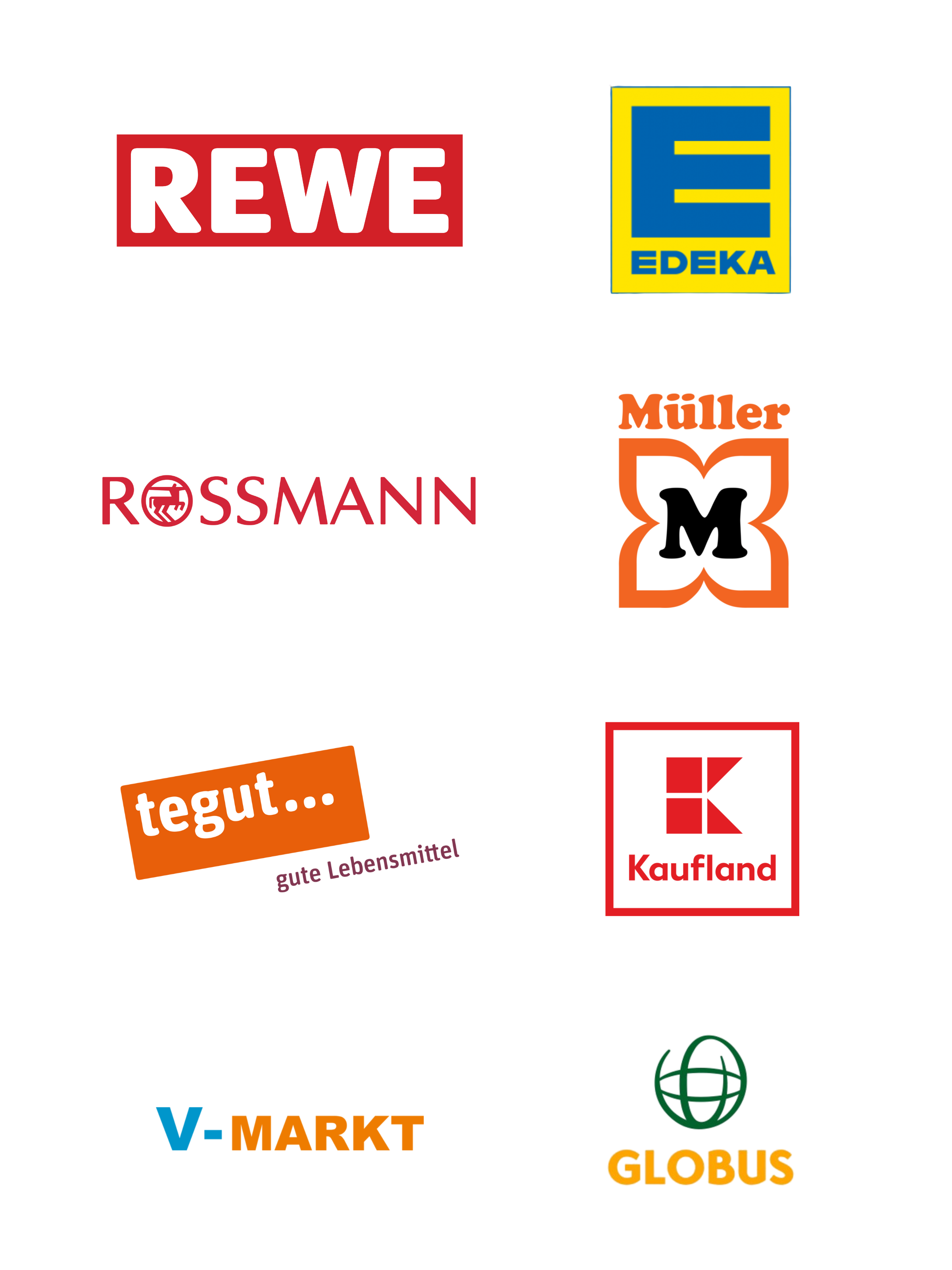 Rewe | Edeka | Müller | Globus | Kaufland | V-Markt | Karstadt | Coop | Billa