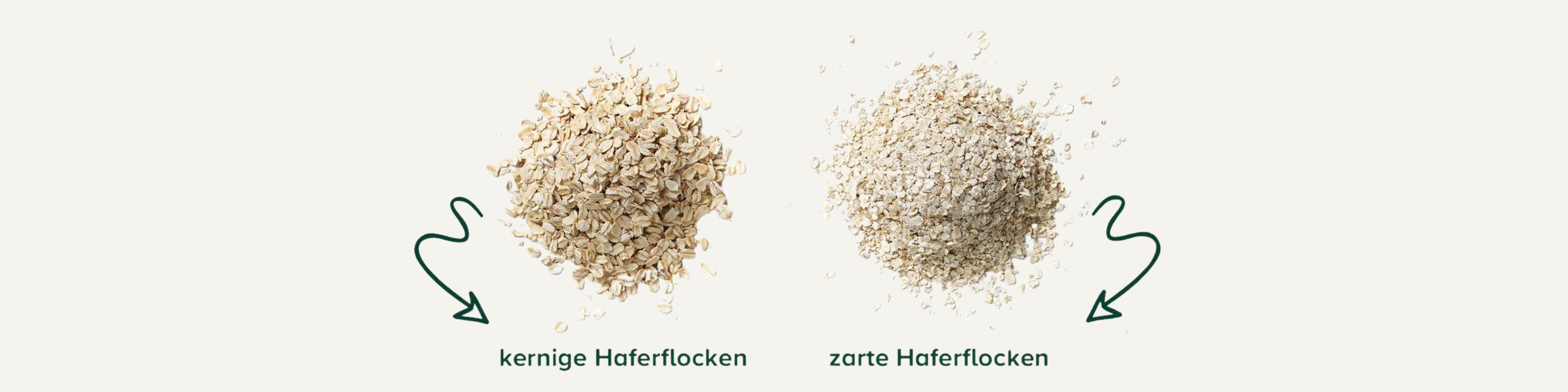 Unsere Hafer Heroes spielen bei der Zubereitung von Overnight Oats eine wichtige Rolle. Haferflocken lassen sich in drei verschiedene Kategorien einteilen: kernige Haferflocken, zarte Haferflocken und Schmelzflocken.