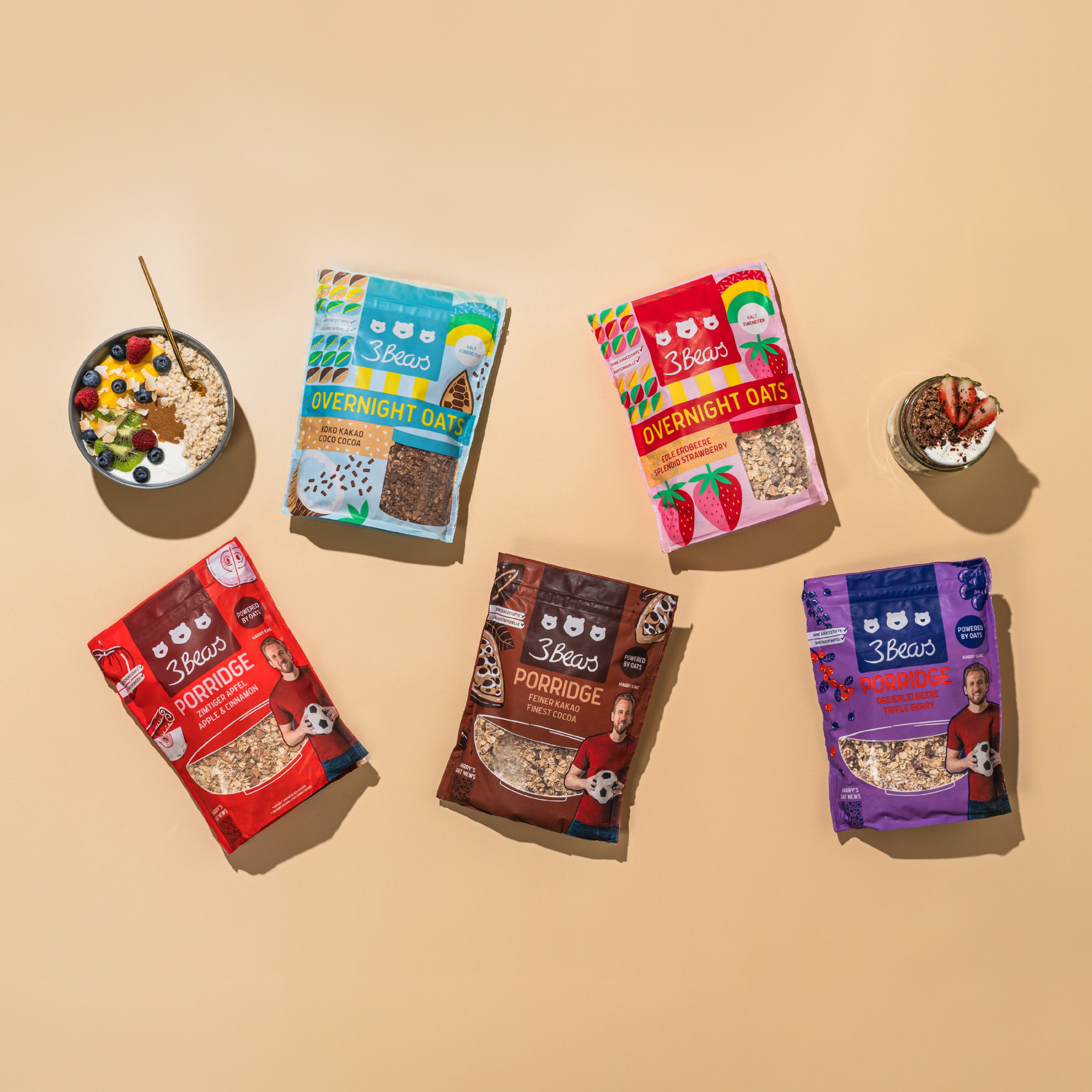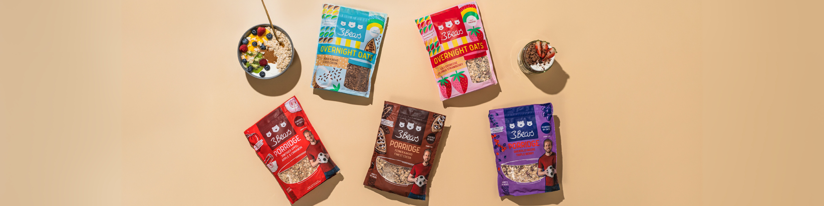 Da können wir mit unseren fruchtigen Sorten Abhilfe schaffen. Mit unseren leckeren Mischungen kannst du dir deine perfekten 3Bears Overnight Oats mischen.