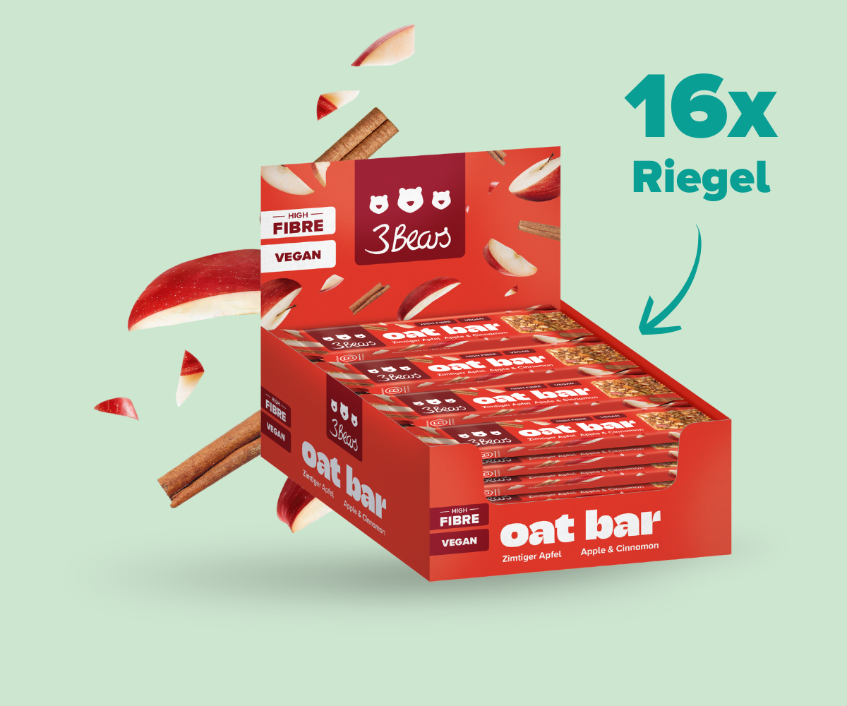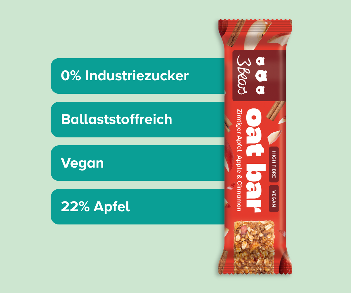 Unsere Oat Bars sind mehr als nur ein Snack – sie sind euer treuer Begleiter für unterwegs, nach dem Sport oder zwischendurch. Voller Hafer, fruchtig im Geschmack und mit der vertrauten 3Bears-Qualität, die ihr liebt. Handlich, lecker und immer bereit, wenn euch der kleine Hunger packt.
