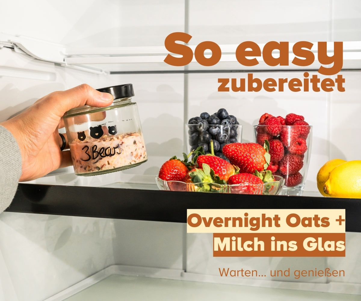 Wir sind Caro und Tim, ein deutsch-britisches Paar, und haben 2016 3Bears gegründet. Warum? Weil wir zum Einen einfach richtig große Hafer-Fans sind und begeistert sind wie viel Gutes in Vollkorn-Hafer steckt. Zum Anderen wollten wir Hafer-Produkte machen, die dein Leben einfacher machen. Dir tolles Frühstück bieten, das unglaublich lecker und abwechslungsreich ist – dabei easy in der Zubereitung und so natürlich wie nur möglich. Wir verzichten komplett auf Industriezucker und Aromen, packen getrocknete Früchte in unsere Mischungen und überlegen uns immer wieder in unserer Experimentier-Küche neueste Sorten. Alles bei uns ist 100% pflanzlich und 100% lecker. Probier's aus und werde Teil unserer Community. Join the Morning Oats Club!