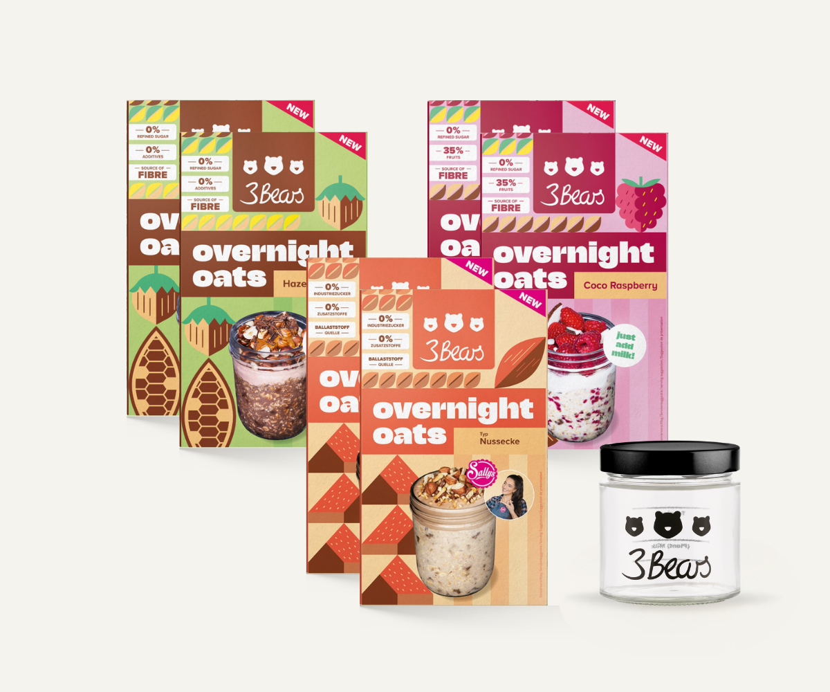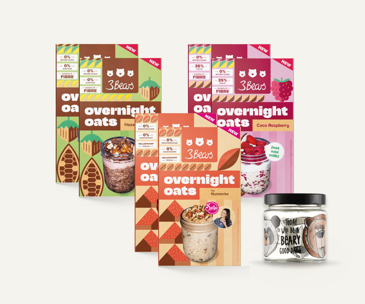 2016 haben wir 3Bears gegründet, weil wir frustriert waren, wieviel Zucker in so vielen Lebensmitteln steckt. Wir brachten Porridge nach Deutschland, weil es für uns die perfekte Basis für ein vollwertiges Frühstück ist. Mittlerweile bekommst du bei uns so ziemlich alles rund um Hafer: Overnight Oats, Riegel, Granola und Zubehör. Und du kannst uns vertrauen, dass wir immer an unseren Prinzipien festhalten. In unsere Produkte kommt kein Industriezucker, keine Zusätze, sie sind immer 100% pflanzlich und Nachhaltigkeit ist tief bei uns verwurzelt.